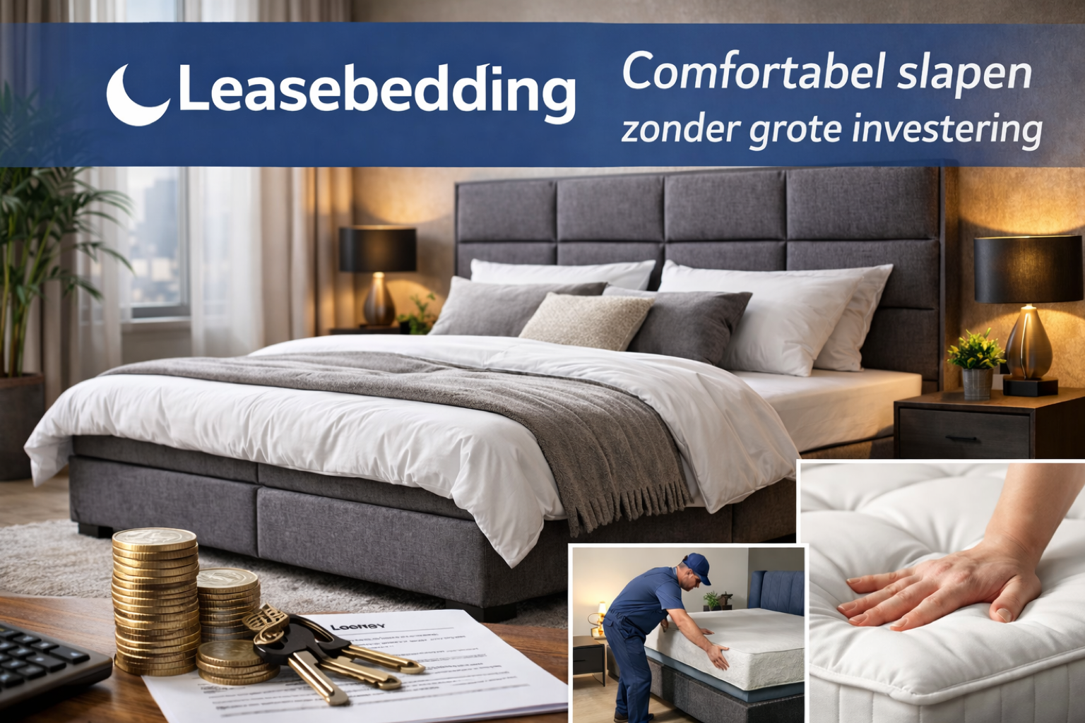 Ben je op zoek naar een luxe boxspring zonder hoge aanschafkosten? Bij Leasebedding.nl kun je een boxspring leasen voor een vast laag maandbedrag. Je slaapt direct comfortabel op een stijlvol bed met medisch matras en topper, inclusief levering, montage en service. Boxspring leasen Nederland, bed huren zonder kopen.